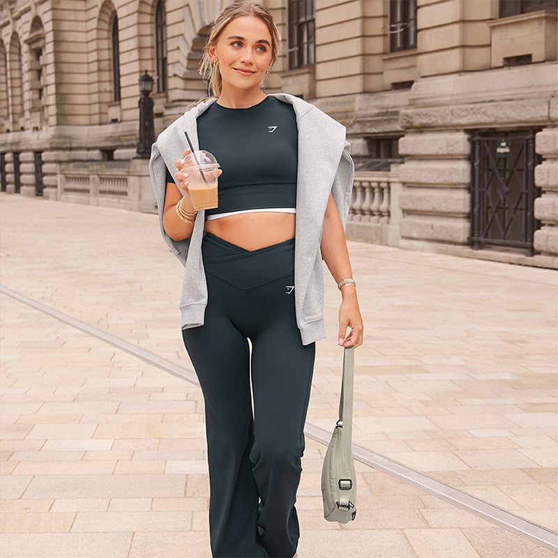Now you’ve learnt everything about how to style flare leggings and what to wear with flare leggings, and you’ll want to ensure that your pair fits exactly right. They should fit snugly around your waist and thighs without being restrictive, and the length should sit nicely on top of your shoes without dragging on the floor. Check out our Find Your Fit | Gymshark Leggings Sizing Guide to find out how to measure your size correctly and get your perfect style.