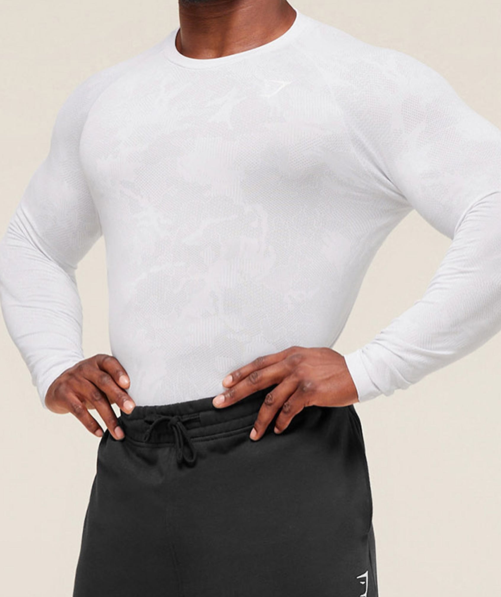 Consigue libertad hasta el final con Geo Seamless. La tecnología absorbente de sudor y las estructuras de malla transpirable mantienen tu cuerpo fresco y seco. El material ligero y las costuras mínimas garantizan cero distracciones para el máximo enfoque. Y las mangas raglán acentúan tus hombros para dar un guiño sutil al físico por el que has trabajado. Es hora de liberar tus movimientos y reimaginar tus capacidades. ¿Estás listo?